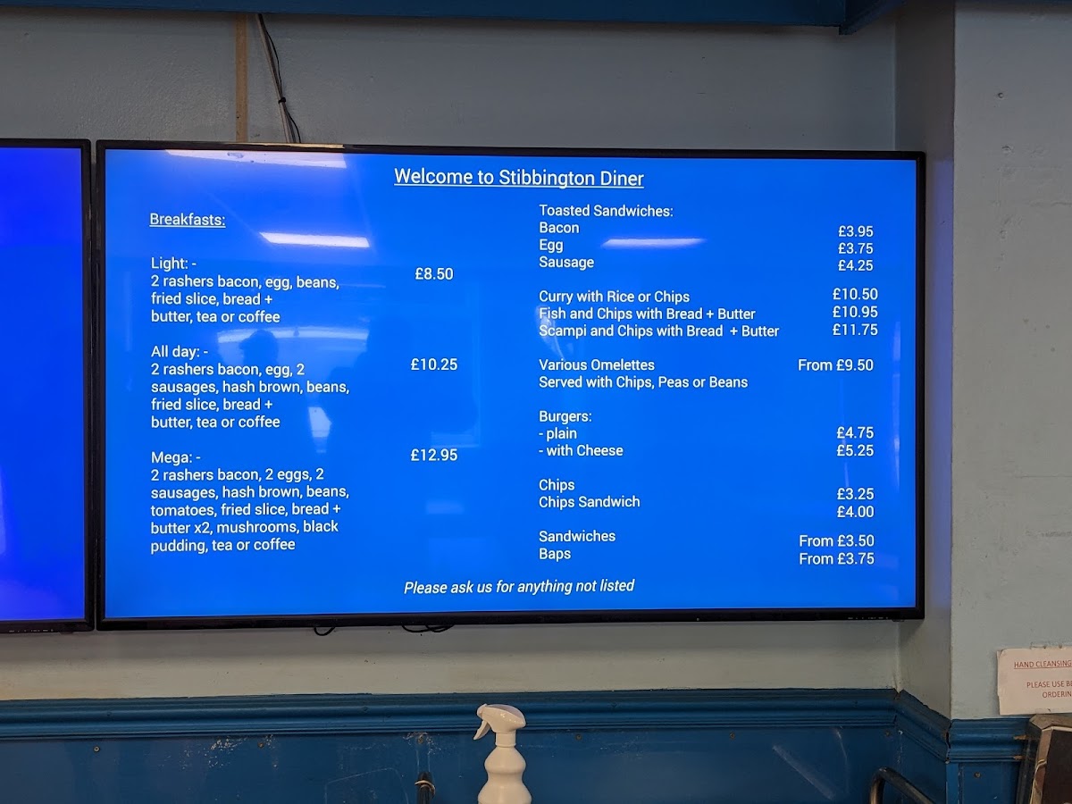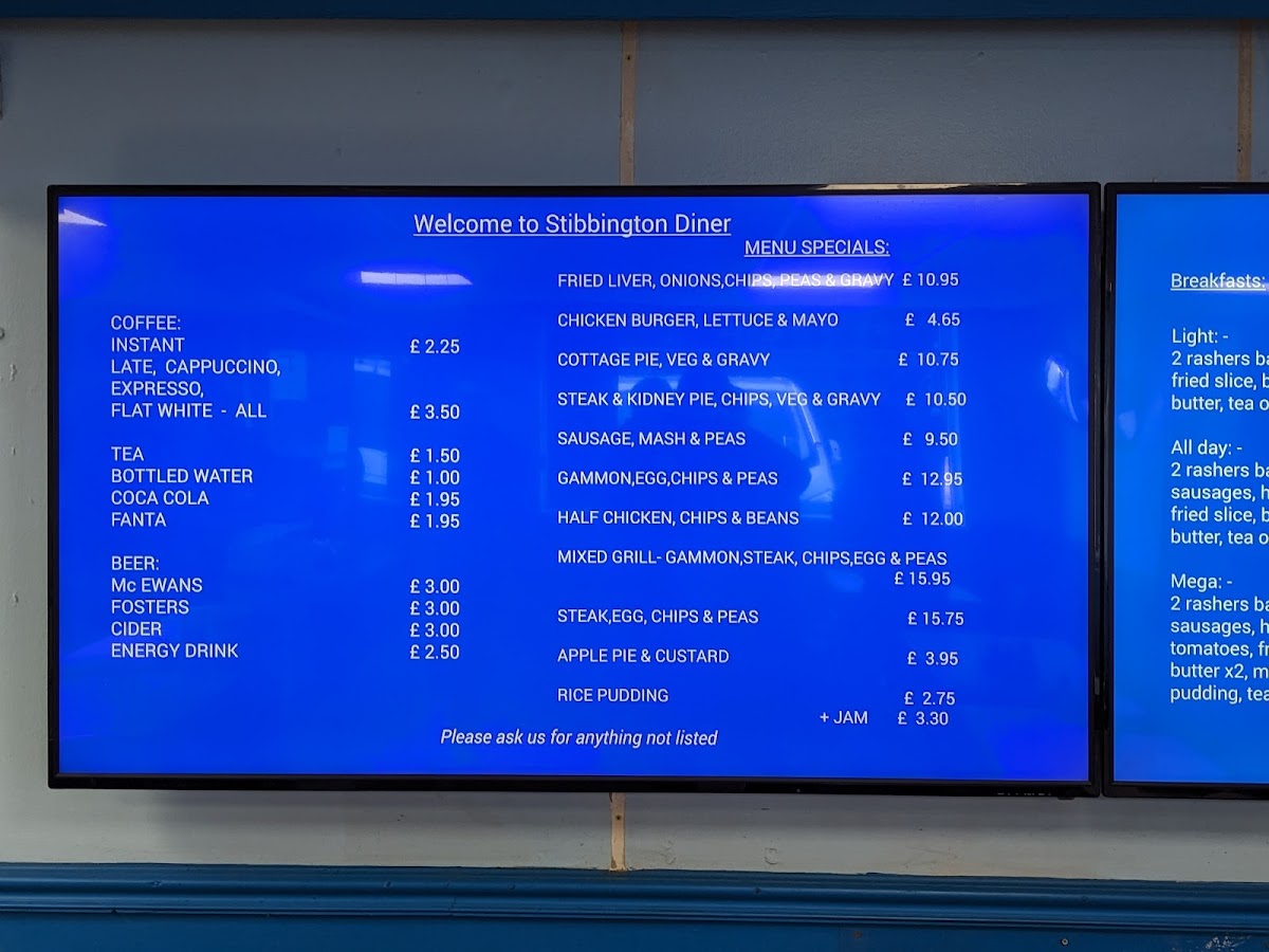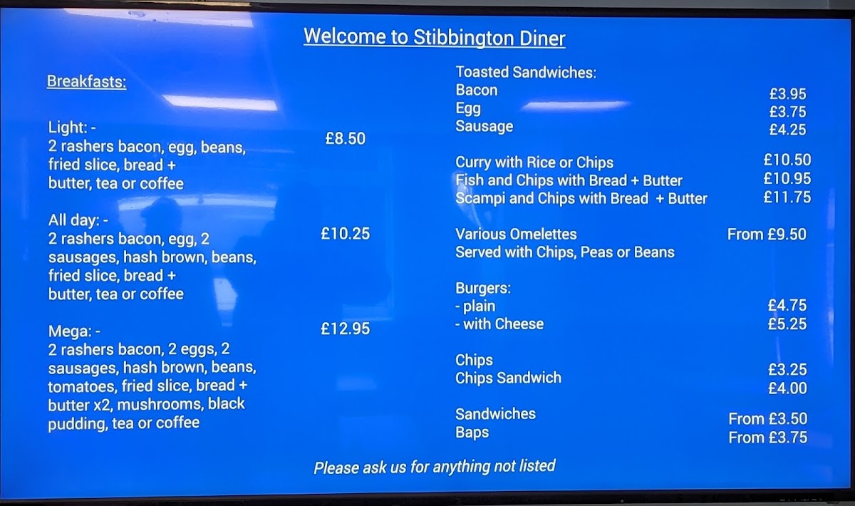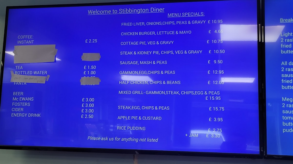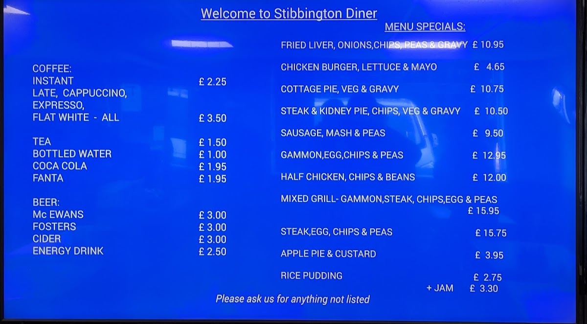 Drink options complement your meal wonderfully, with an inviting selection of coffees—don’t miss the Flat White at £3.50. Diners rave about the friendly staff and the clean, welcoming atmosphere, making Stibbington a perfect pitstop whether you’re refueling for a journey or enjoying a leisurely meal. The diner also offers impressive value, catering especially to those on the go, and is particularly beloved by traveling truckers.
