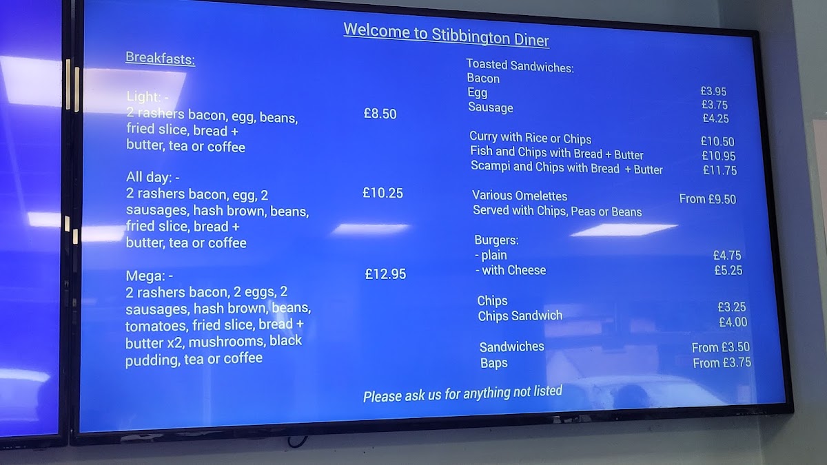 Your next stop along the A1 is made simple with the allure of Stibbington Diner's robust menu and exceptional service.